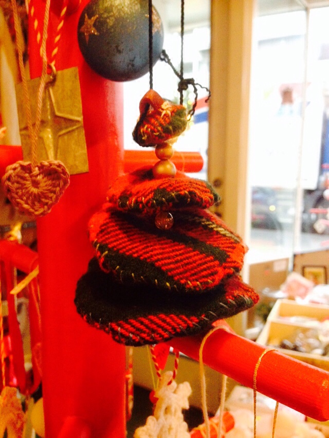 クリスマスのデコレーションは作るのが楽しいです。後は革と布で松ぼっくりと、置きツリーも作りました。