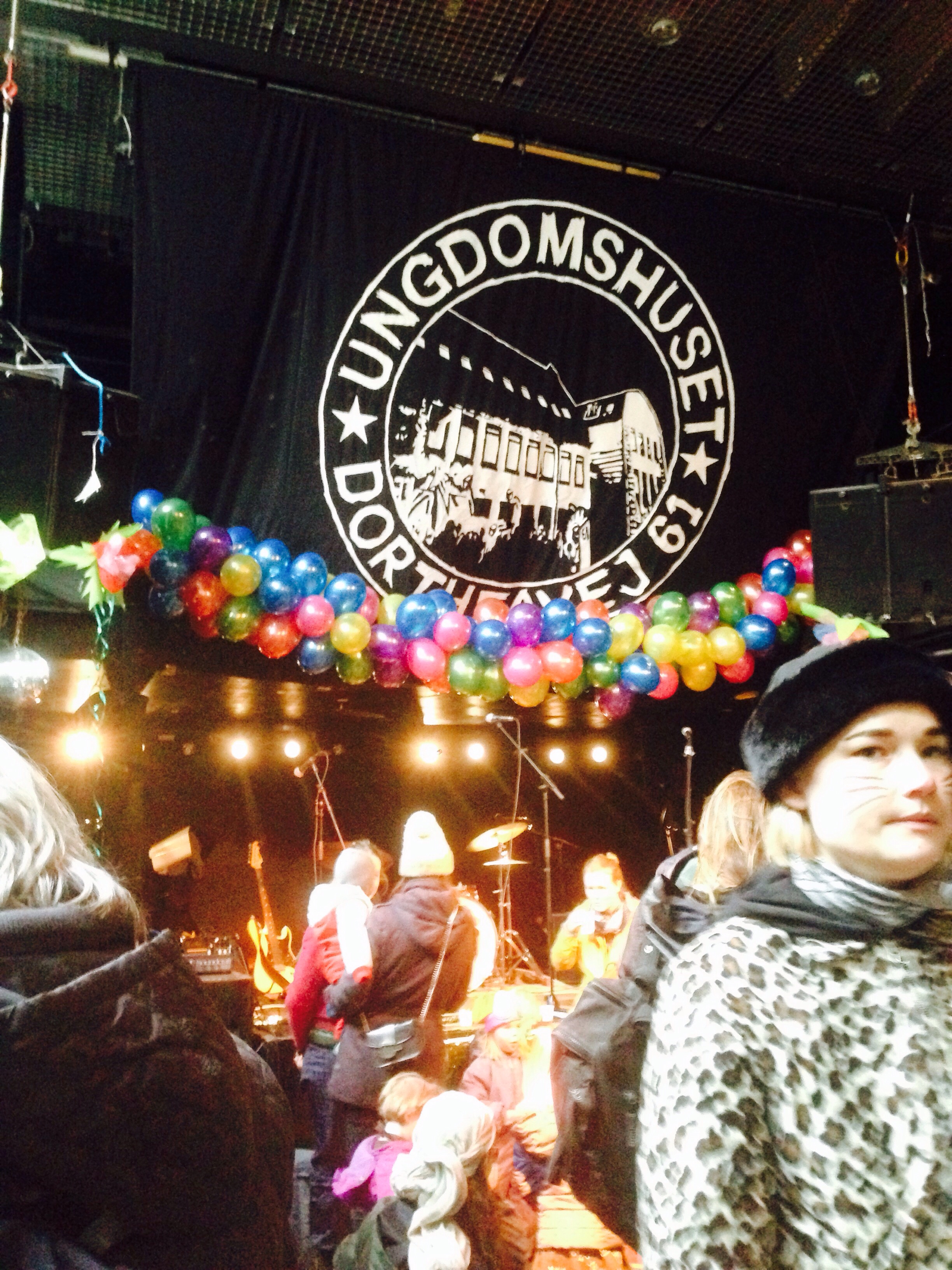 ご覧のとおり、仮装パーティーです(特に画面右の人)。黒幕には「若者の家」と書いていあります。