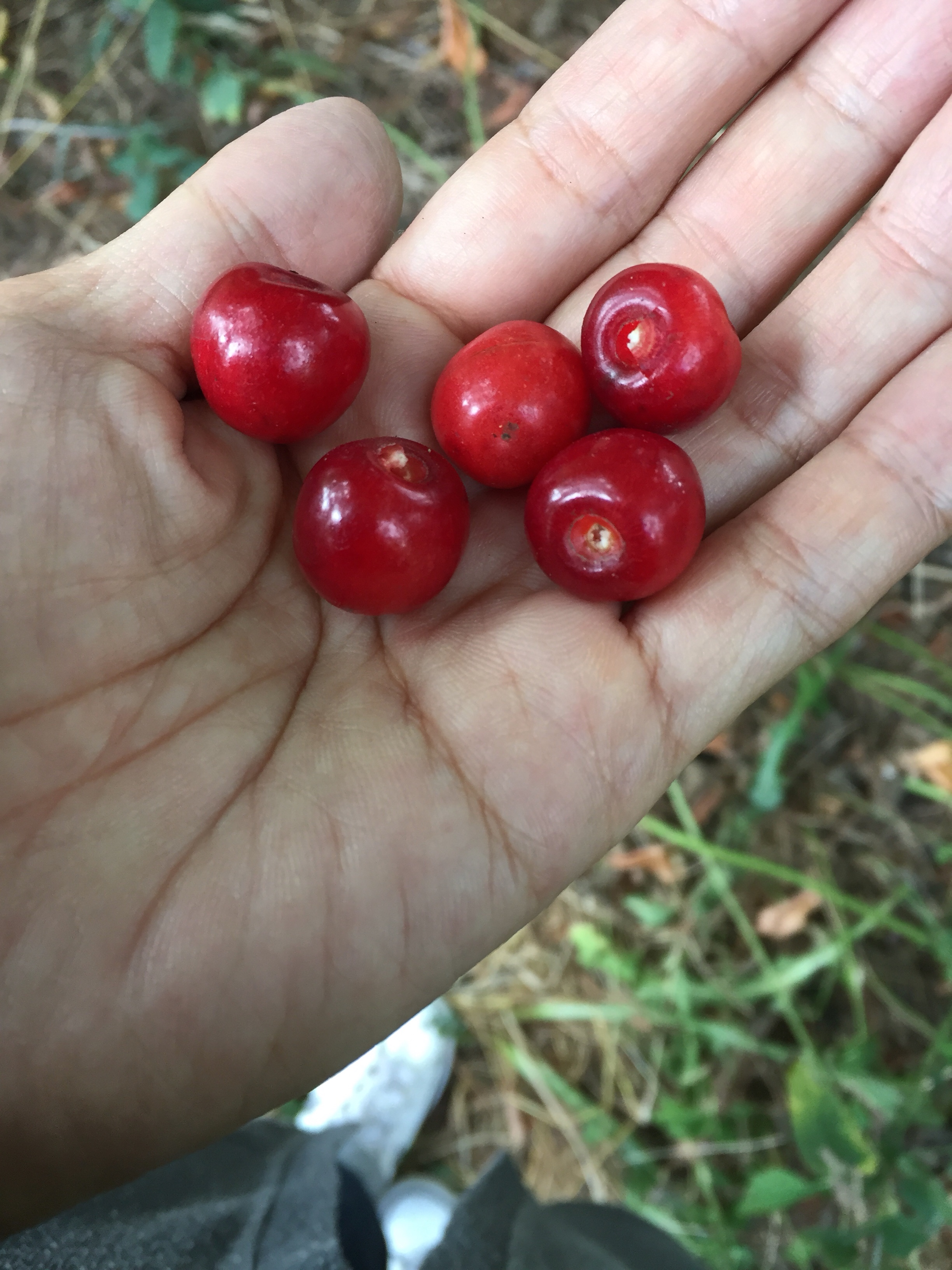 じゃなくて、サクランボです。体を思わずよじってしまうくらい酸っぱいですが、サマーハウスの周りでたくさん採れます。