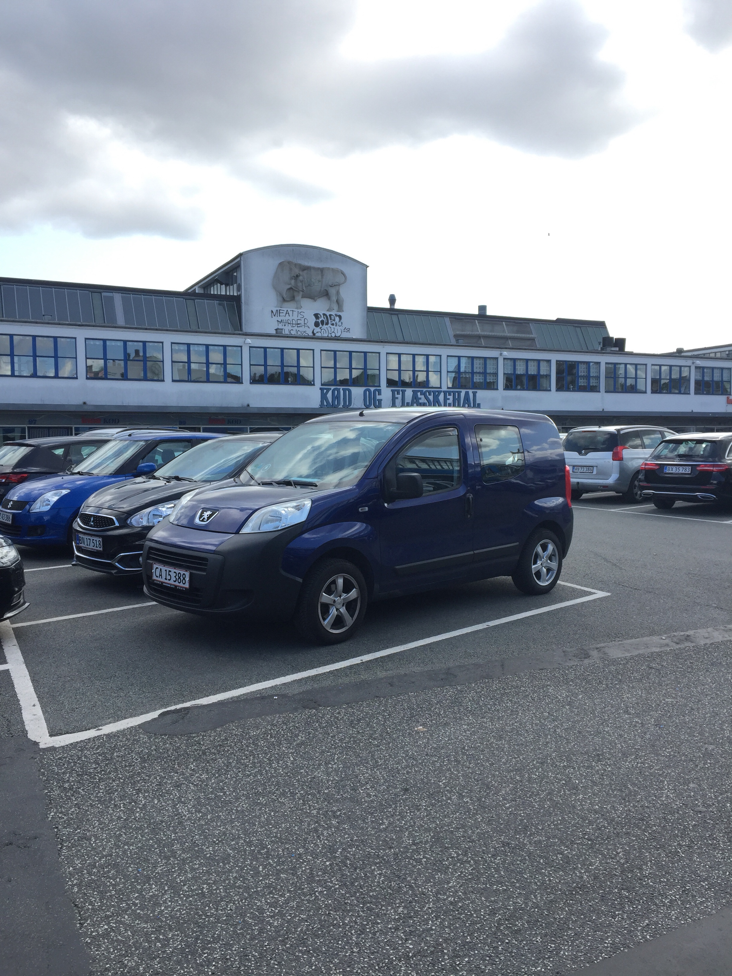 昔、肉の市場だった所が今は閉鎖されてスーパーやレストランが入っています。でも肉市場の文字「kød og flæskehal」は残されてる。。