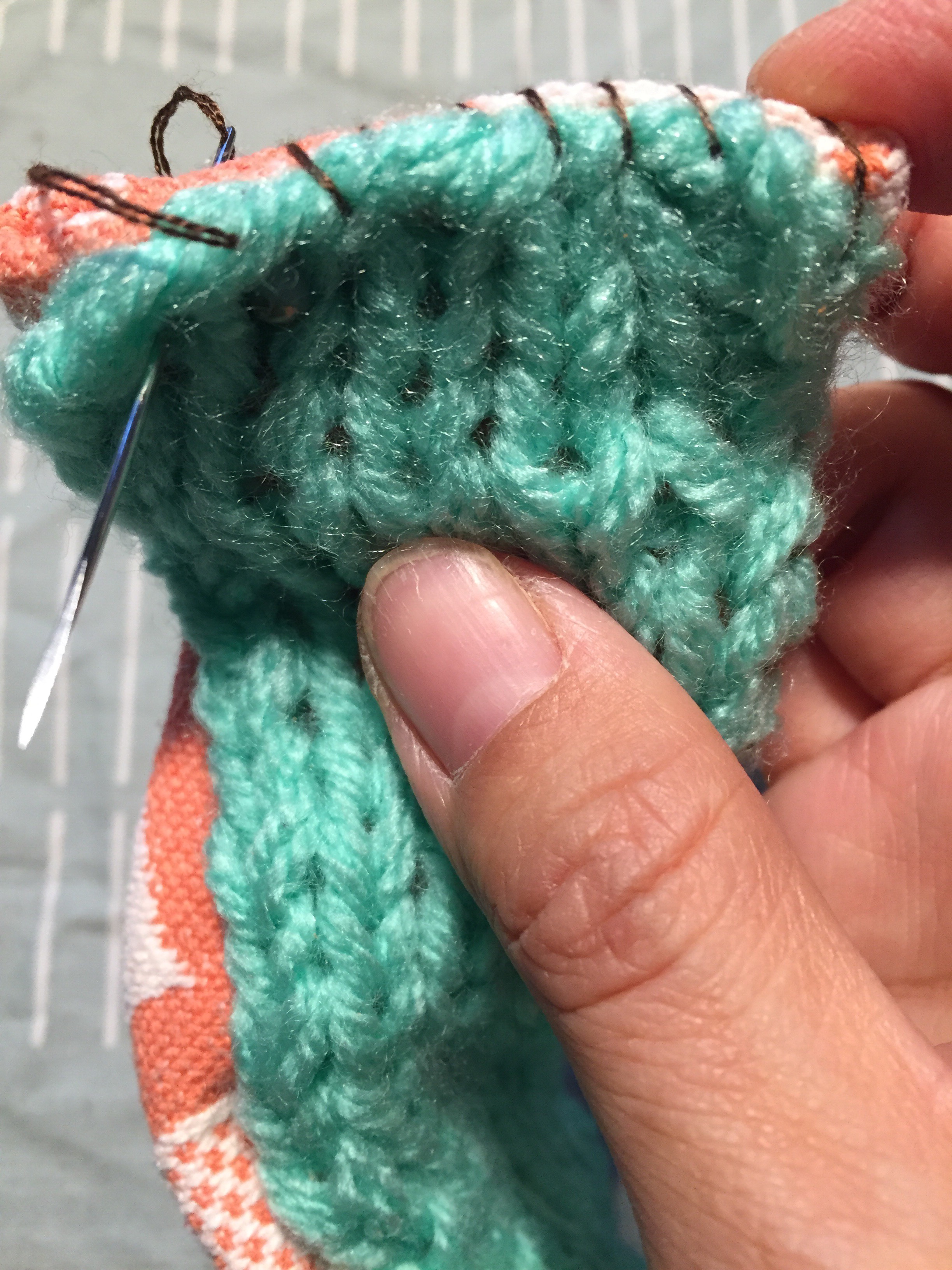 久しぶりに持ち手を縫いつけました。やっぱりミシンよりしっくりくる気がするなぁ。